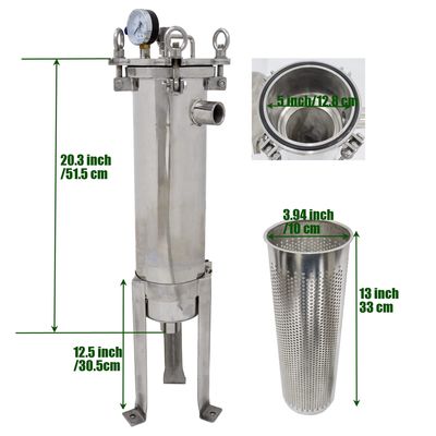 浄化および産業用過濾用用のバッグフィルターハウジング. 304ステンレス鋼,20um #4フィルターバッグとEDPMOリングで標準で提供されています.強固で耐久性があります.過濾面積は1.2平方フィート.
